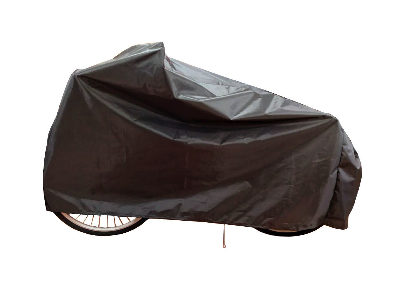 При использовании чехла-накидки с велосипедом ничего делать не нужно: седло опускать не требуется, руль поворачивать не нужно, чехол-накидка накрывает велосипед полностью, какой он есть — это удобно.