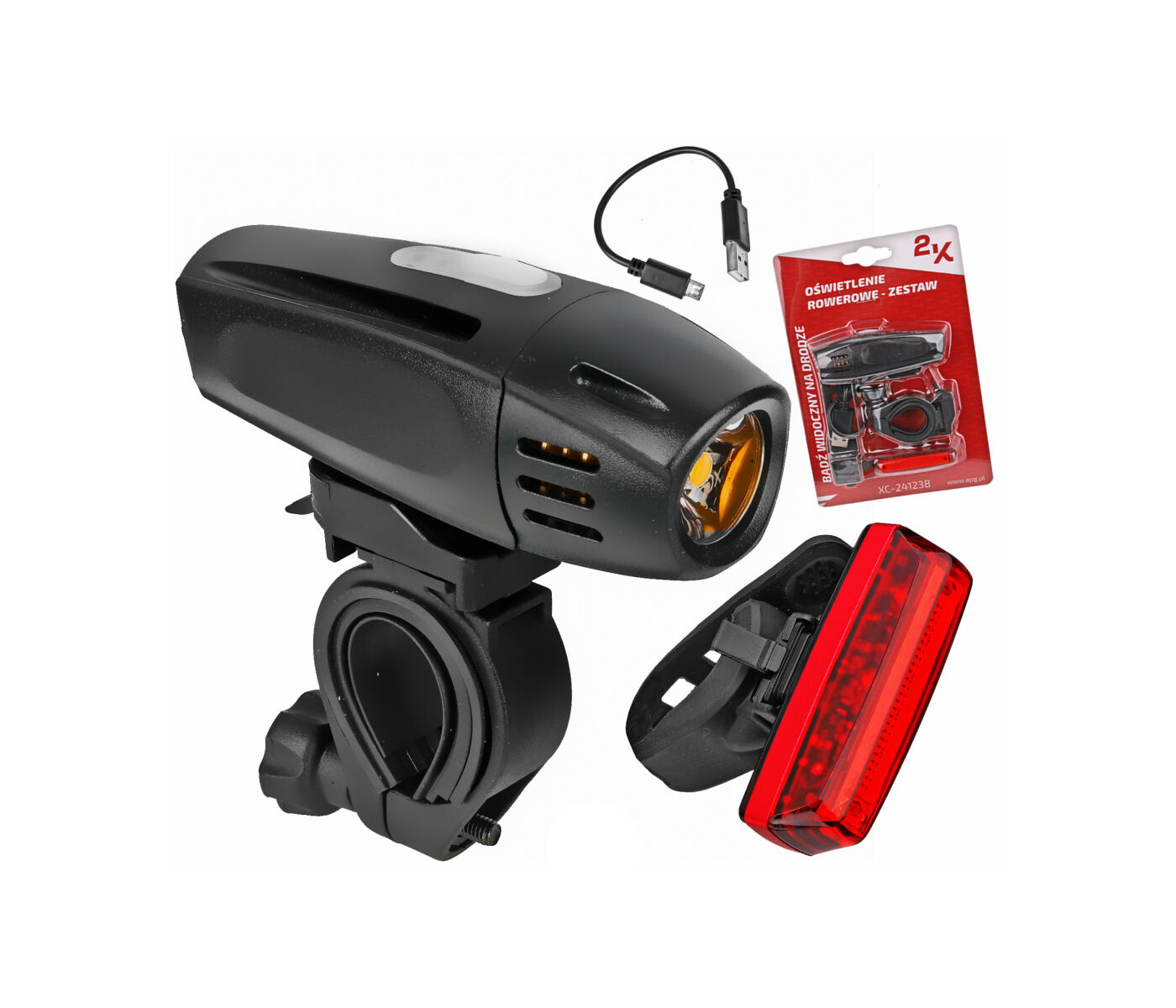 Набор освещения XC-241238-USB (XC-241 + XC238R) предназначен для ежедневного использования в городском и дорожном движении. Обеспечивает высокий уровень безопасности, простоту эксплуатации и удобство зарядки через USB. Фонари отлично освещают переднюю и боковые зоны и подходят для всех типов велосипедов. Оснащены индикатором уровня заряда батареи.