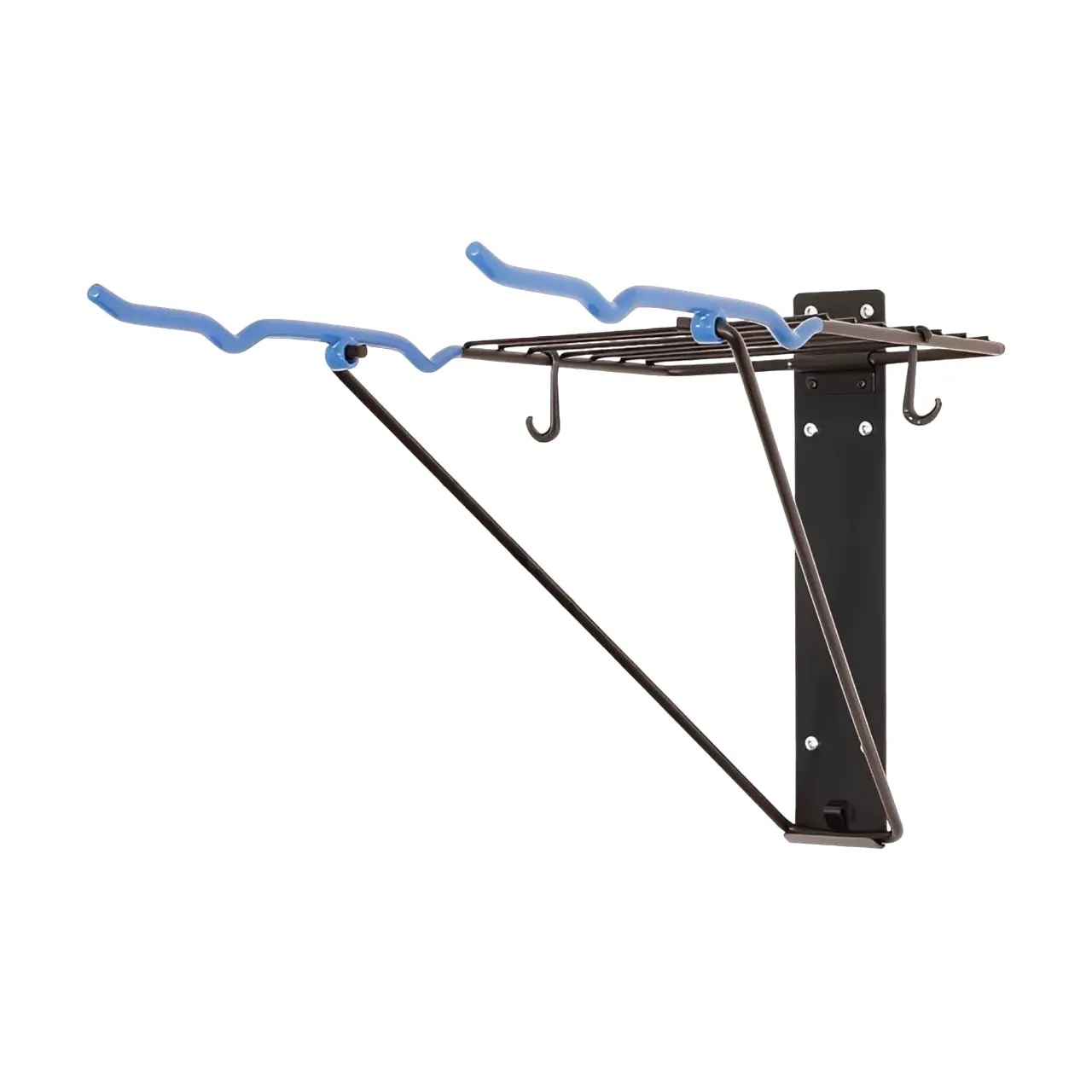 В этом практичном настенном держателе для велосипедов достаточно места для 1-2 велосипедов. Кроме того, есть полка для хранения велосипедных принадлежностей, например, шлемов или перчаток. Настенный кронштейн можно сложить, чтобы сэкономить место, когда он не нужен.