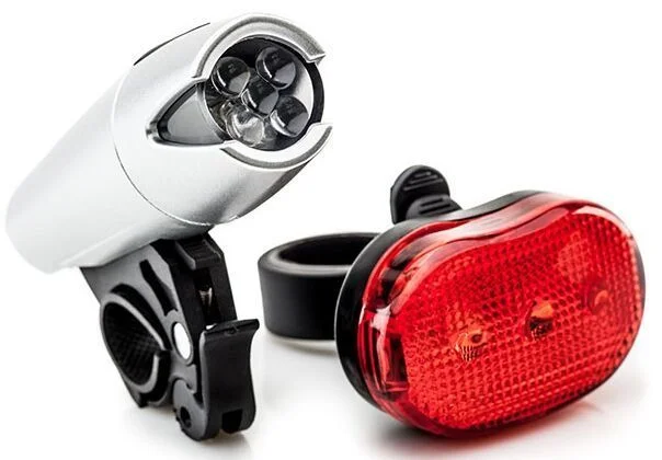 Задний: Водонепроницаемый, 3 функции. Световой элемент: 3 светодиода. Крепление: к велосипеду, к одежде. Питание: ААА (1.5V) - 2 шт. в комплекте.
