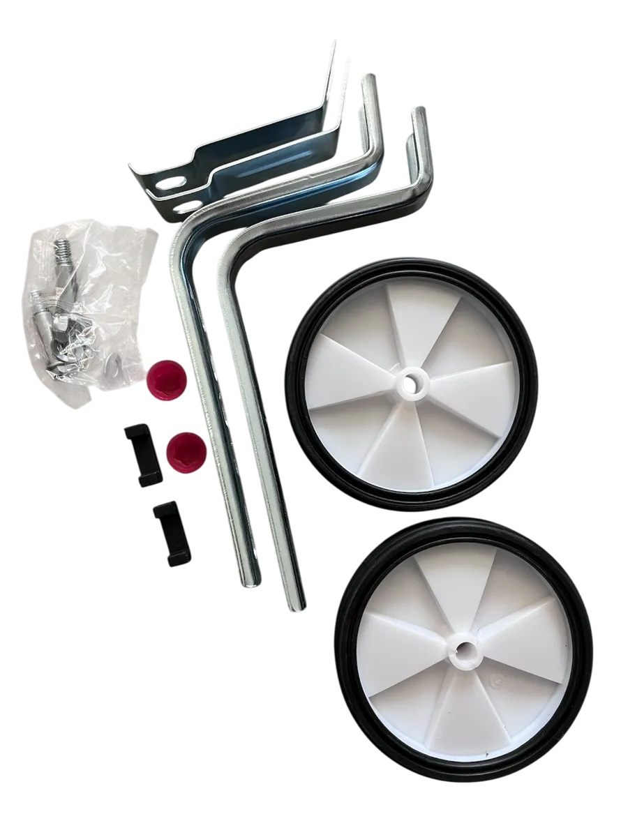 Универсальные велосипедные боковые колёса HW 172201 подойдут для детских велосипедов с диаметром колёс от 12 до 20 дюймов. Надёжная металлическая конструкция обеспечивает устойчивость и безопасность ребёнка во время обучения езде. Колёса оснащены креплением длиной 23 см, ширина самих колёсиков составляет 12.5 см. В комплект входит 2 колеса, 2 металлических кронштейна, болты и гайки для монтажа.