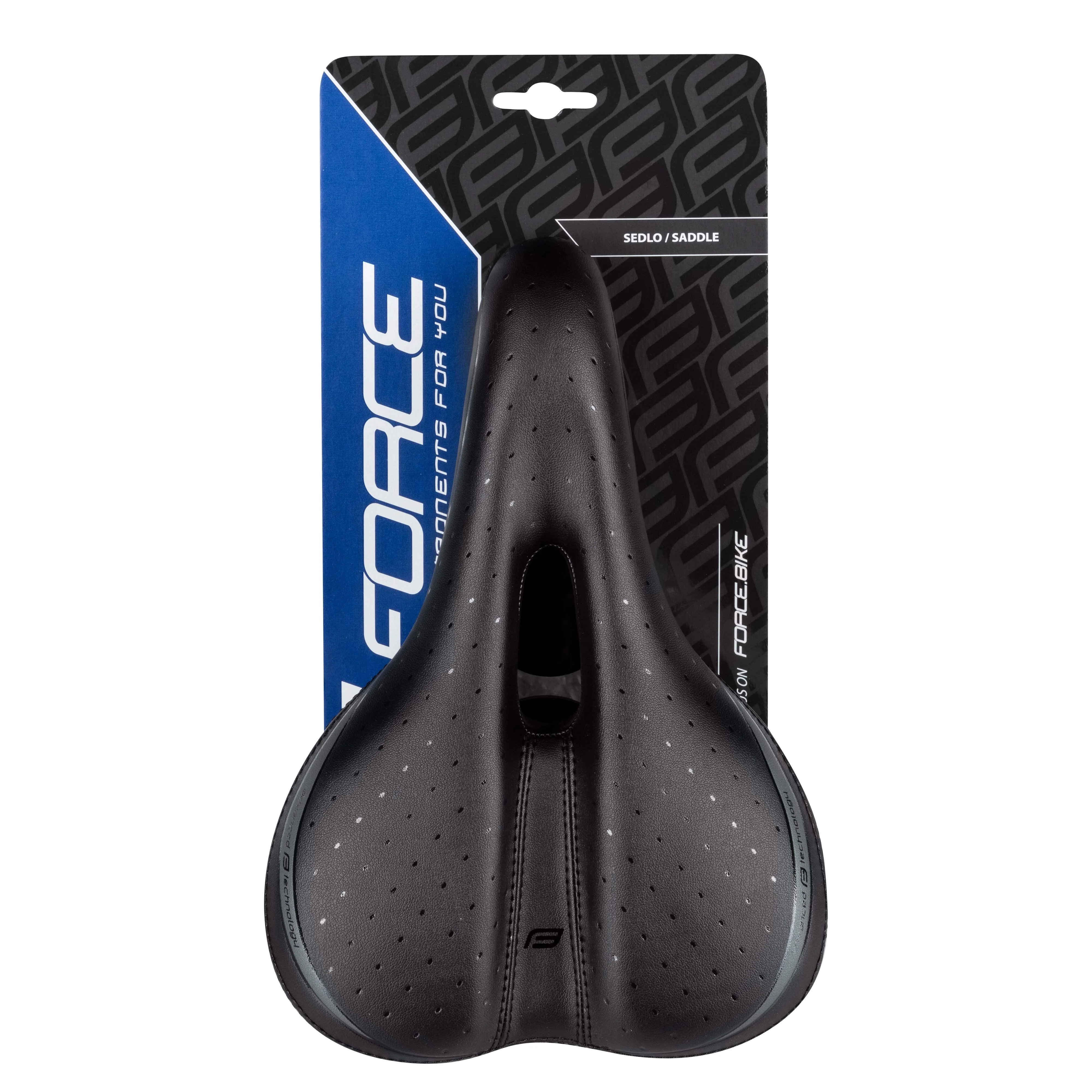 - Седло с подвеской из эластомера и вентиляционным отверстием с напечатанным логотипом FORCE