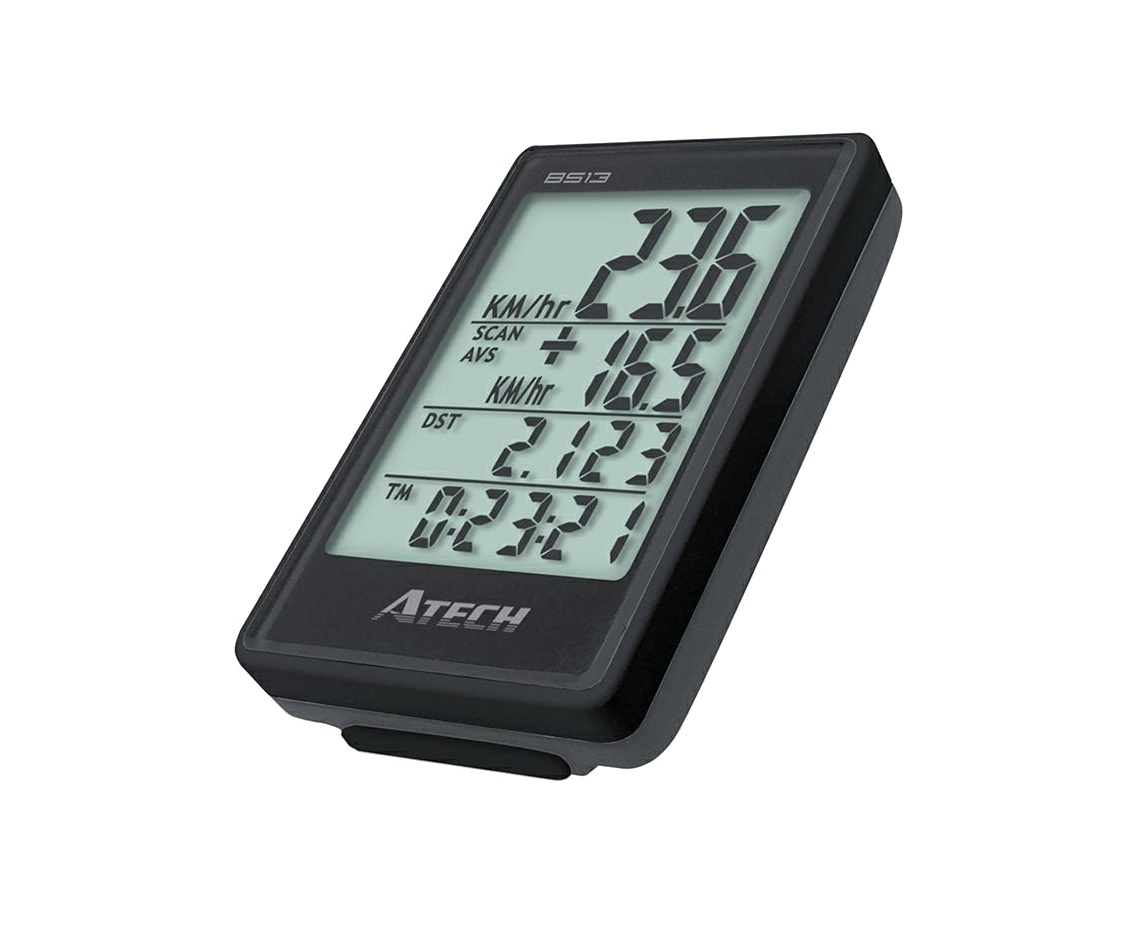 Беспроводной велокомпьютер ATECH BS13-BV для велосипедистов среднего уровня, оснащённый универсальными функциями. Лёгкий в установке, простой в настройке. Оснащён удобным четырёхстрочным дисплеем с полным текстовым отображением. Управление осуществляется одной кнопкой.