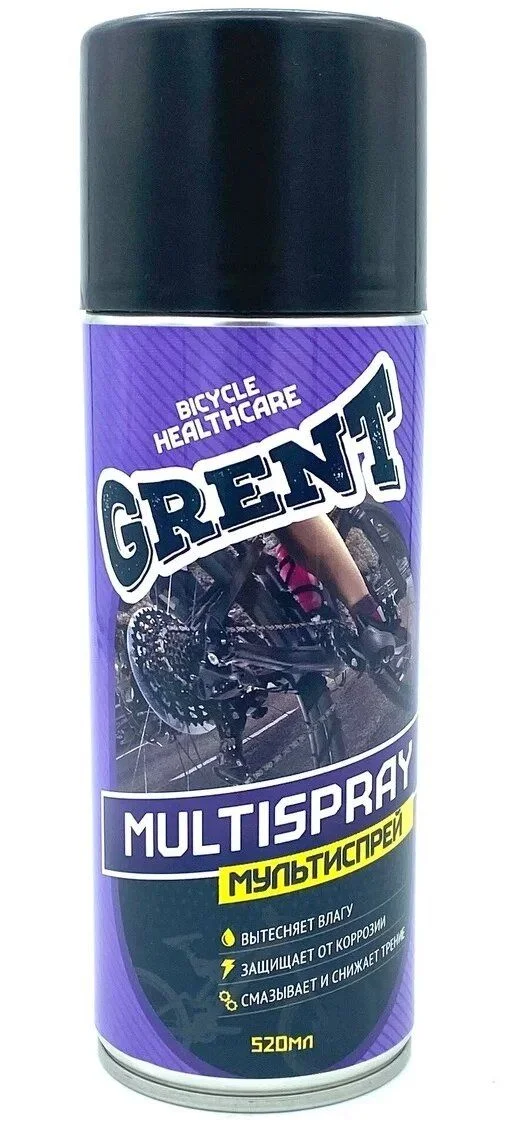 GRENT Multispray 520 мл - средство для эффективного формования устойчивой защитной пленки, снижения трения и нагревания, а также для предотвращения коррозии. Применяется с резьбовыми, подвижными и неподвижными разъемными соединениями, подседельными штырями, втулками, вилками, цепями. Предназначен как для металлических, так и для резиновых и пластиковых покрытий.