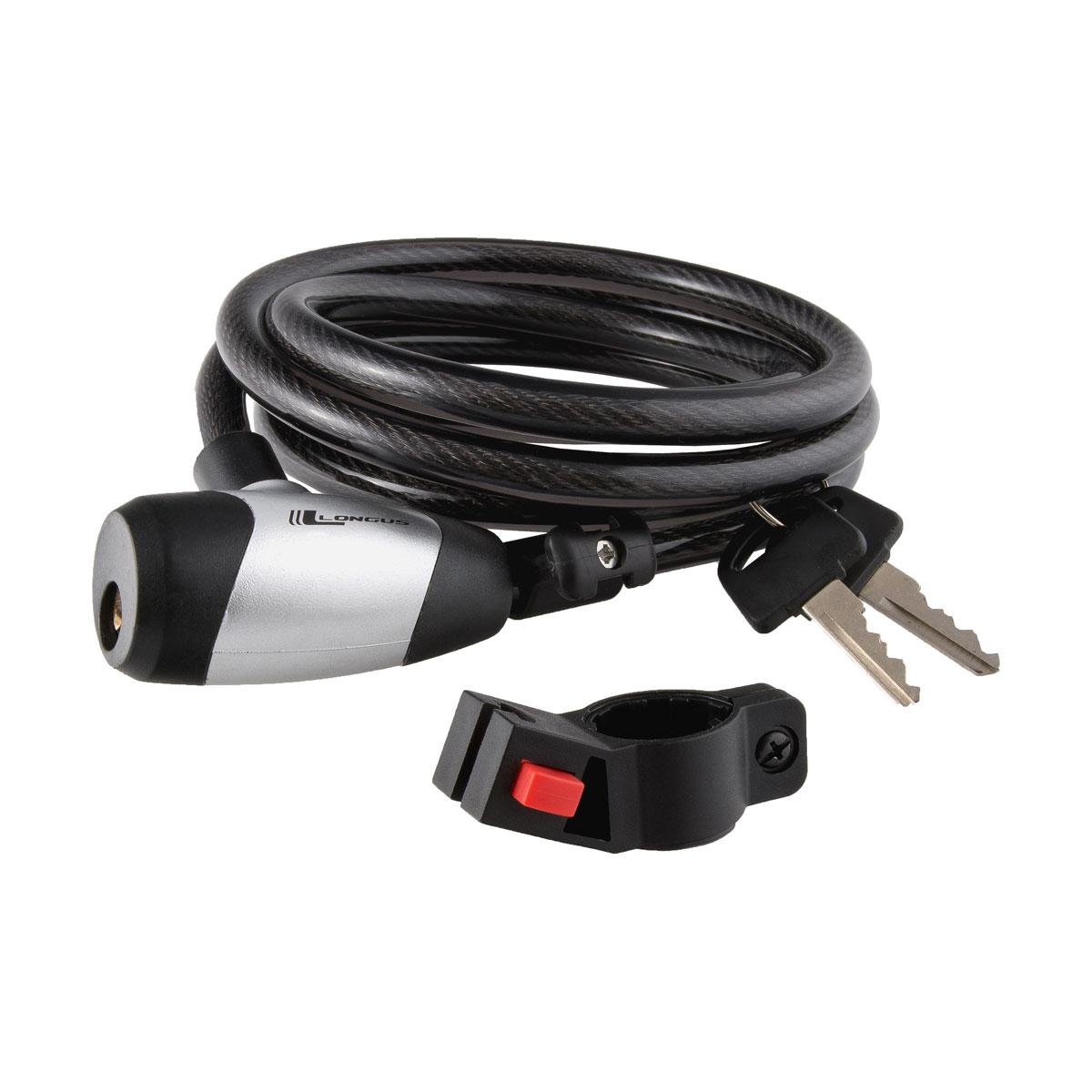 Прочный удлинённый спиральный тросовый замок с запиранием на ключ и креплением на раму или подседельный штырь. Имеет элегантный корпус с повышенной защитой. Предназначен для защиты велосипеда или аксессуаров от случайной кражи.
