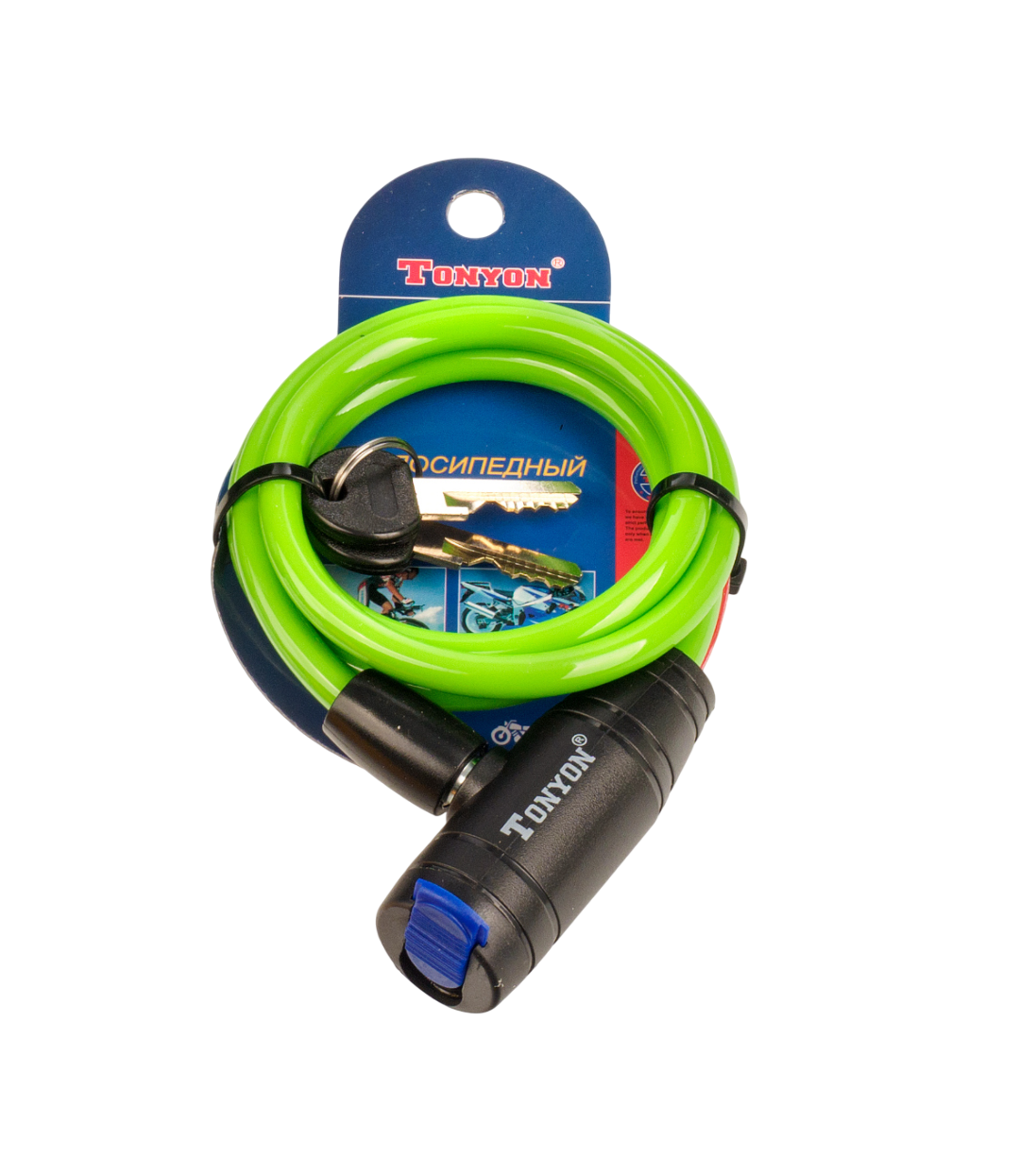 Замок велосипедный TONYON 506K-0810C (8/1000 мм, зелёный)