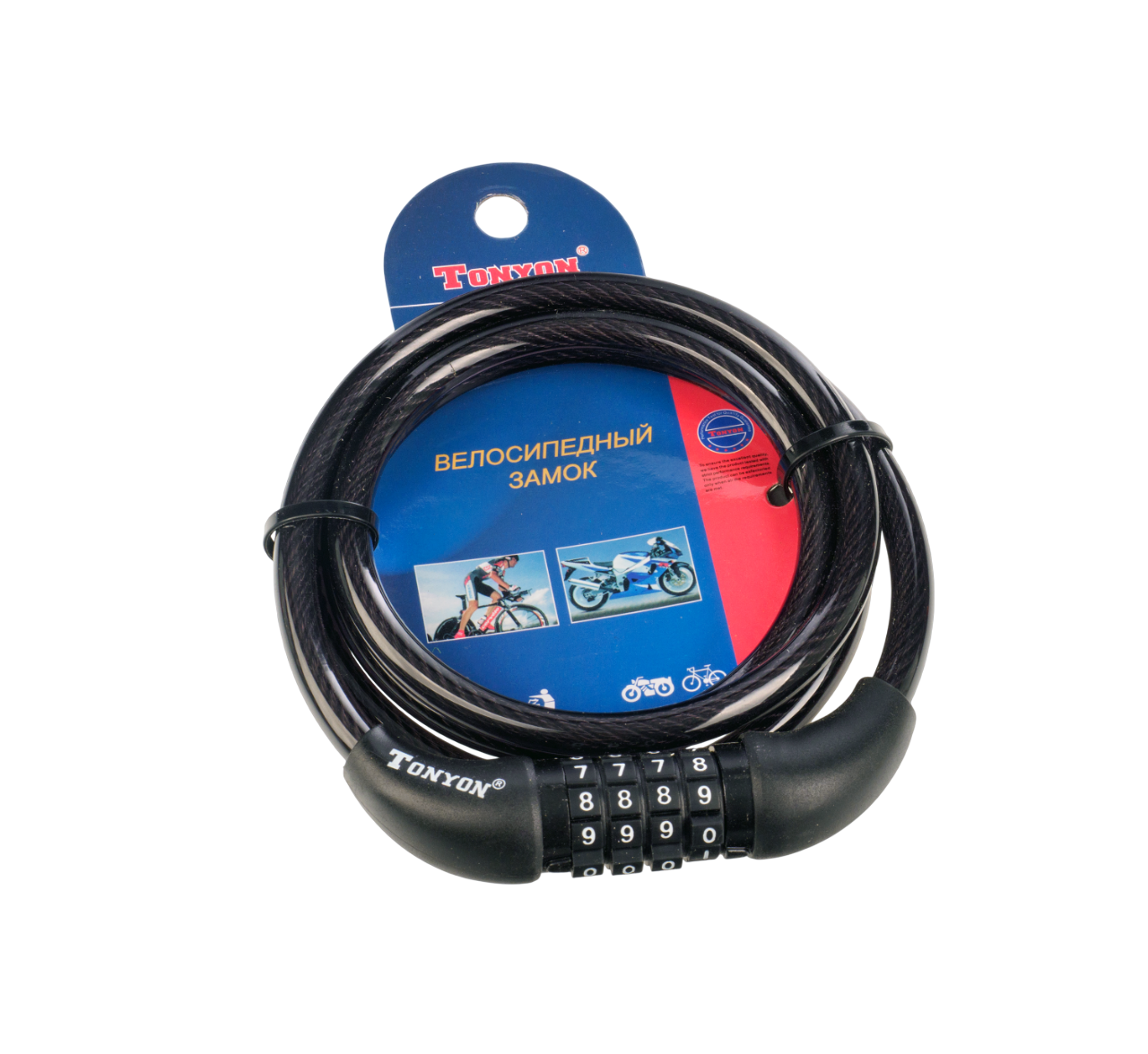 Замок велосипедный TONYON 567C-0812 (кодовый, 8/1200 мм)