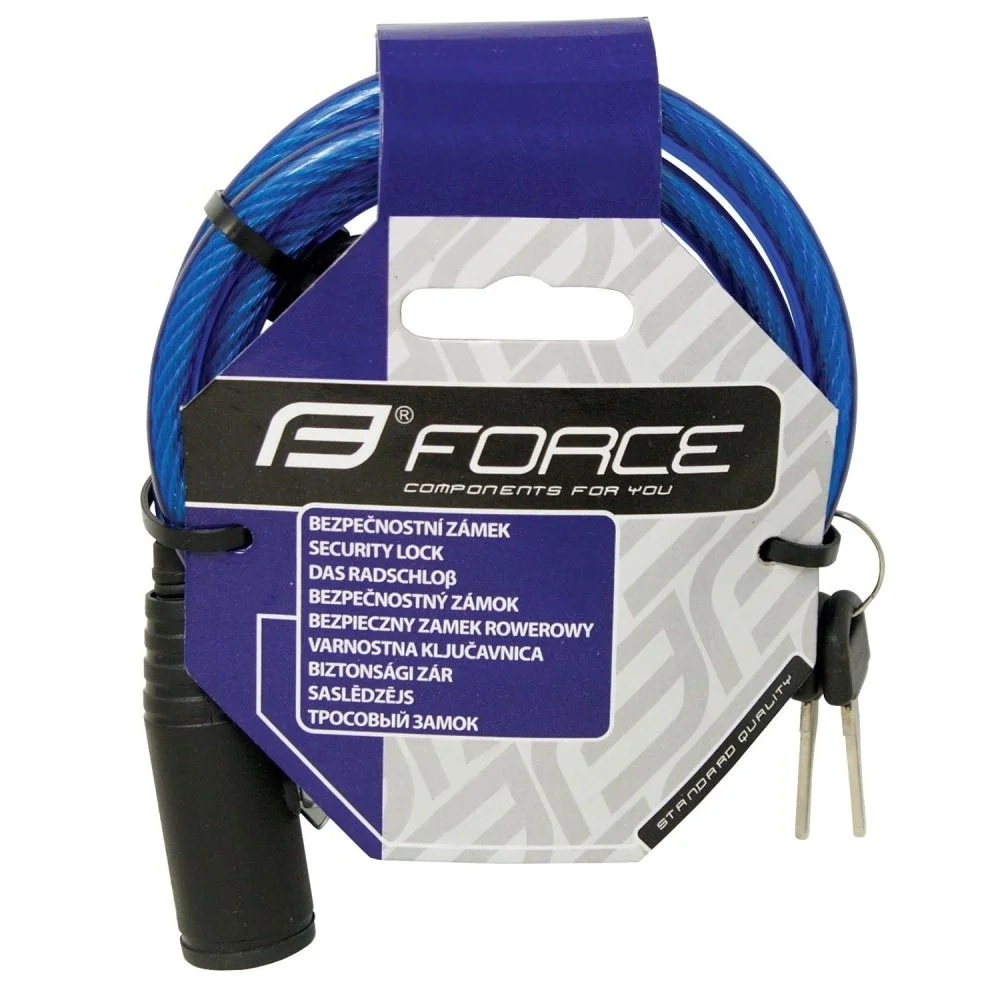 Замок Force, ECO, 8/1200мм, спираль, с креплением, синий