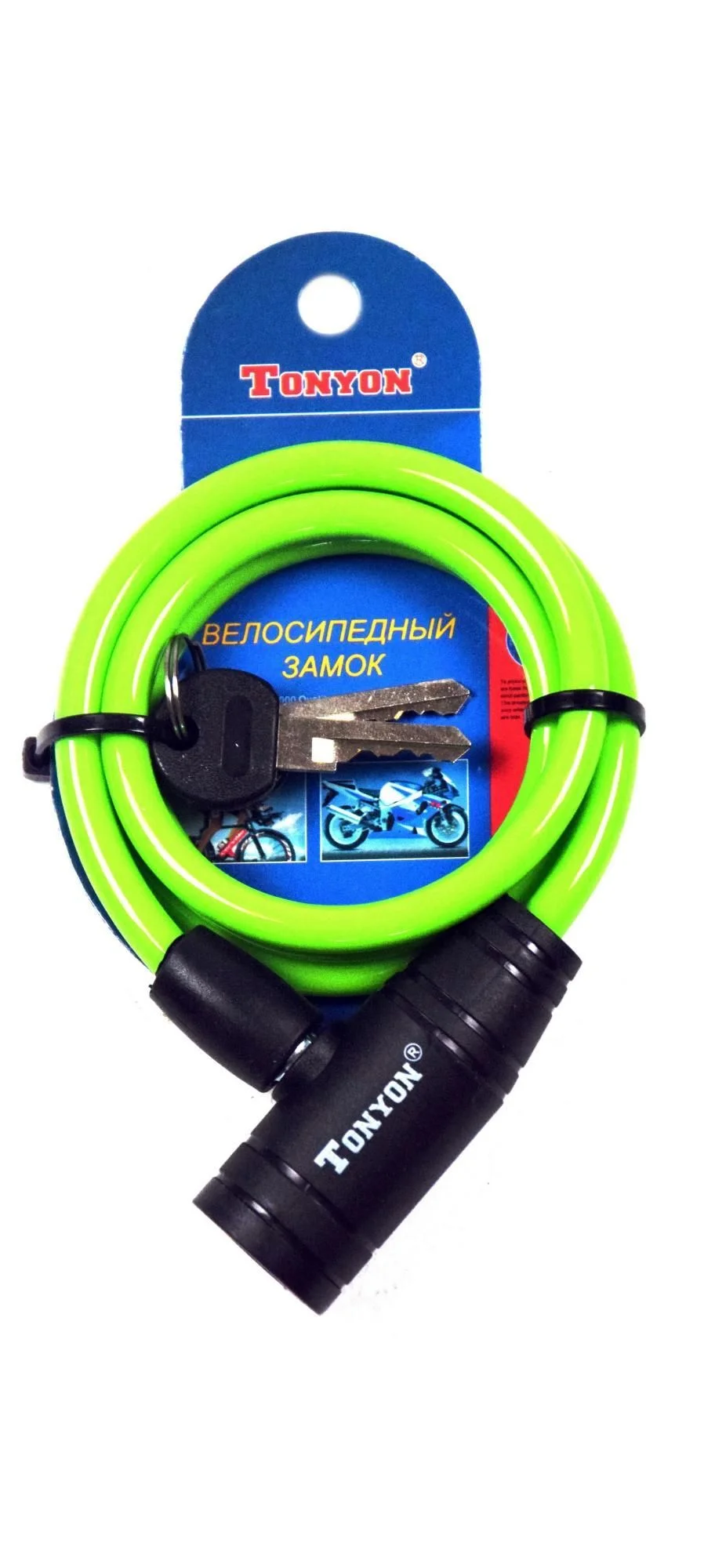 Замок велосипедный TONYON ø10мм х 1500мм, 506K-1015C (Зеленый)
