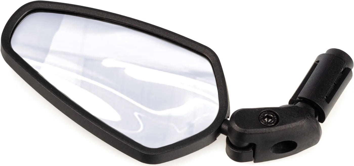Велосипедное зеркало заднего вида с креплением в торец руля. Размеры: ø116 мм х H 65 мм. Материал: нейлон.