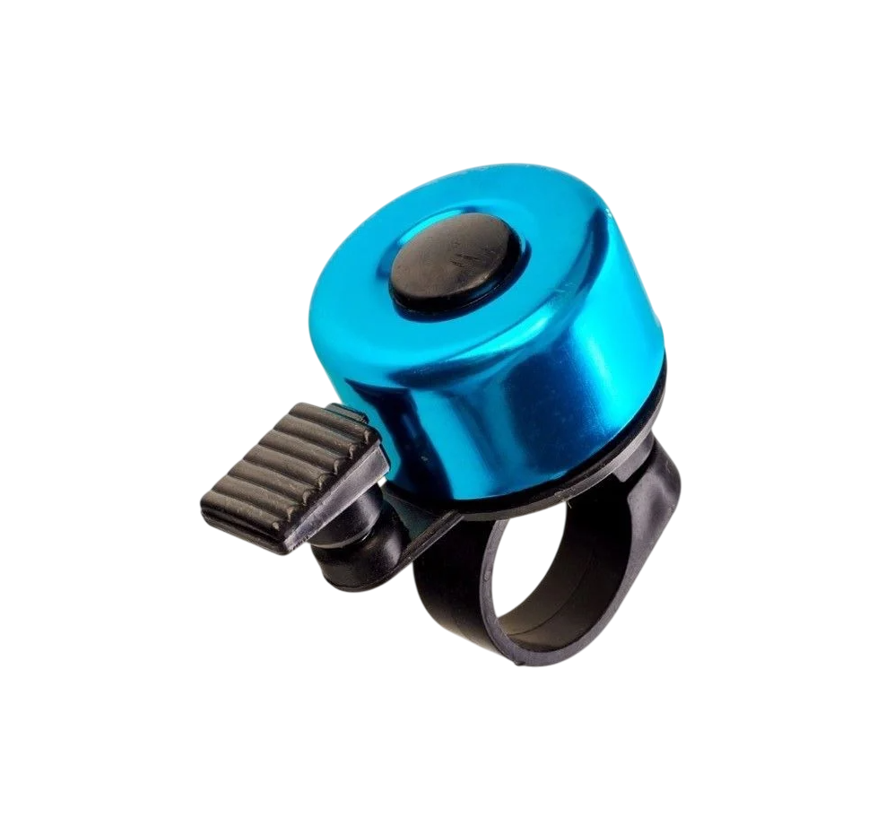 Классический звонок типа «молоточек» с надёжным креплением на руль. Основание выполнено из прочного пластика, верхняя часть — из лёгкого алюминия. Обеспечивает громкий и чёткий звук, хорошо слышимый на дороге.
