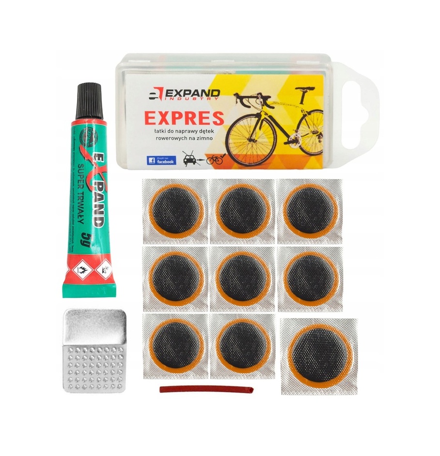 Комплект предназначен для ремонта повреждённых велосипедных камер. Также можно использовать для ремонта камер: автомобильных, мотоциклетных, детских колясок и других. Специально подобранный каучуковый состав латки вместе со скрепляющим средством (клеем) способствует вулканизации латки к велосипедной камере под действием тепла, возникающим во время езды.