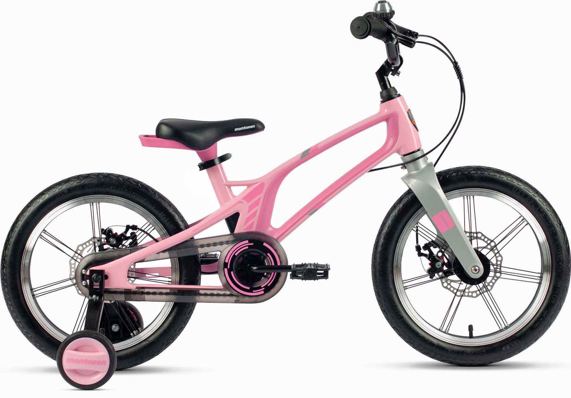 Детский велосипед Montasen MB04 16″ (розовый) — это современная и легкая модель для девочек в возрасте 3–6 лет (рост от 100 до 125 см). Основной особенностью велосипеда является литая рама из магниевого сплава, которая обеспечивает высокую прочность при сравнительно небольшом весе.