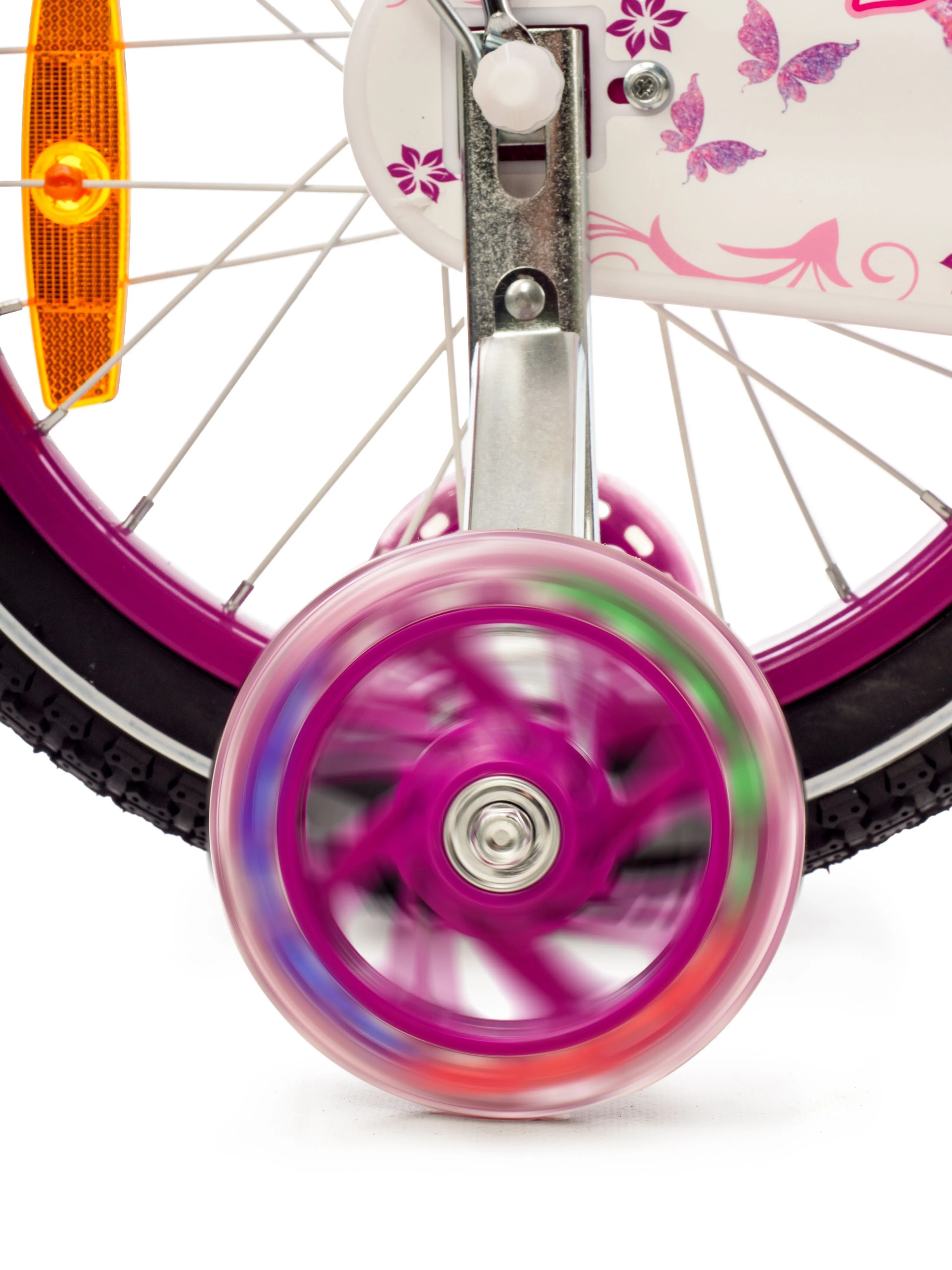 Детский велосипед Favorit Butterfly 16. Модель на 16-дюймовых колесах, которые подходят для детей 4-6 года с ростом от 105 см. Велосипед собран на базе прочной стальной рамы, которая готова к любым нагрузкам и испытаниям. Для более безопасного обучения катанию на велосипеде имеются приставные колеса, которые помогут научиться держать равновесие. За безопасную остановку отвечает простой и удобный ножной тормоз. Симпатичный дизайн обязательно понравится юной леди.Характеристики