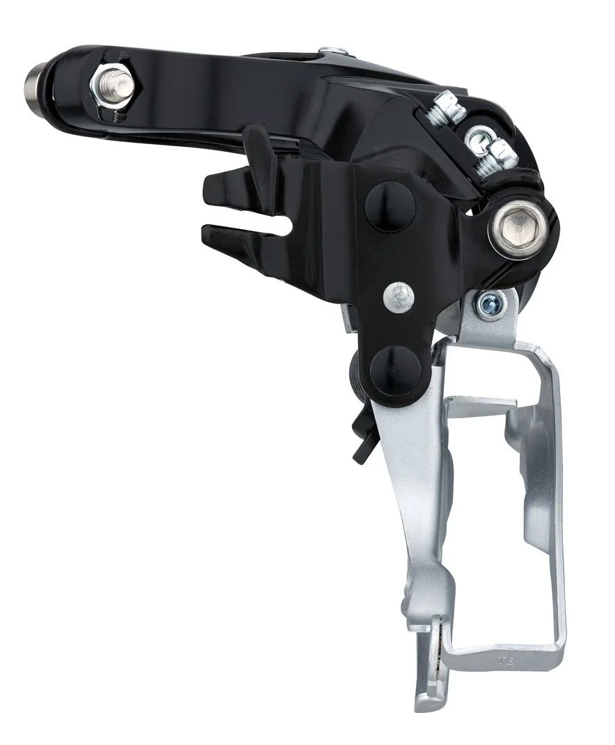 Передний переключатель Shimano Altus M2000 с 9-скоростной трансмиссией обеспечивает эффективное переключение и подходит для велосипедов с большими колесами.